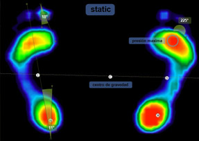 2.-Análisis estático de la huella plantar y posturológico mediante el uso de plataforma de presiones. Determinacion de la morfología del pie; normal, cavo, plano, valgo, equino, pronador , supinador …etc. Y su alineación con el resto de segmentos tobillo, rodilla, cadera y columna.